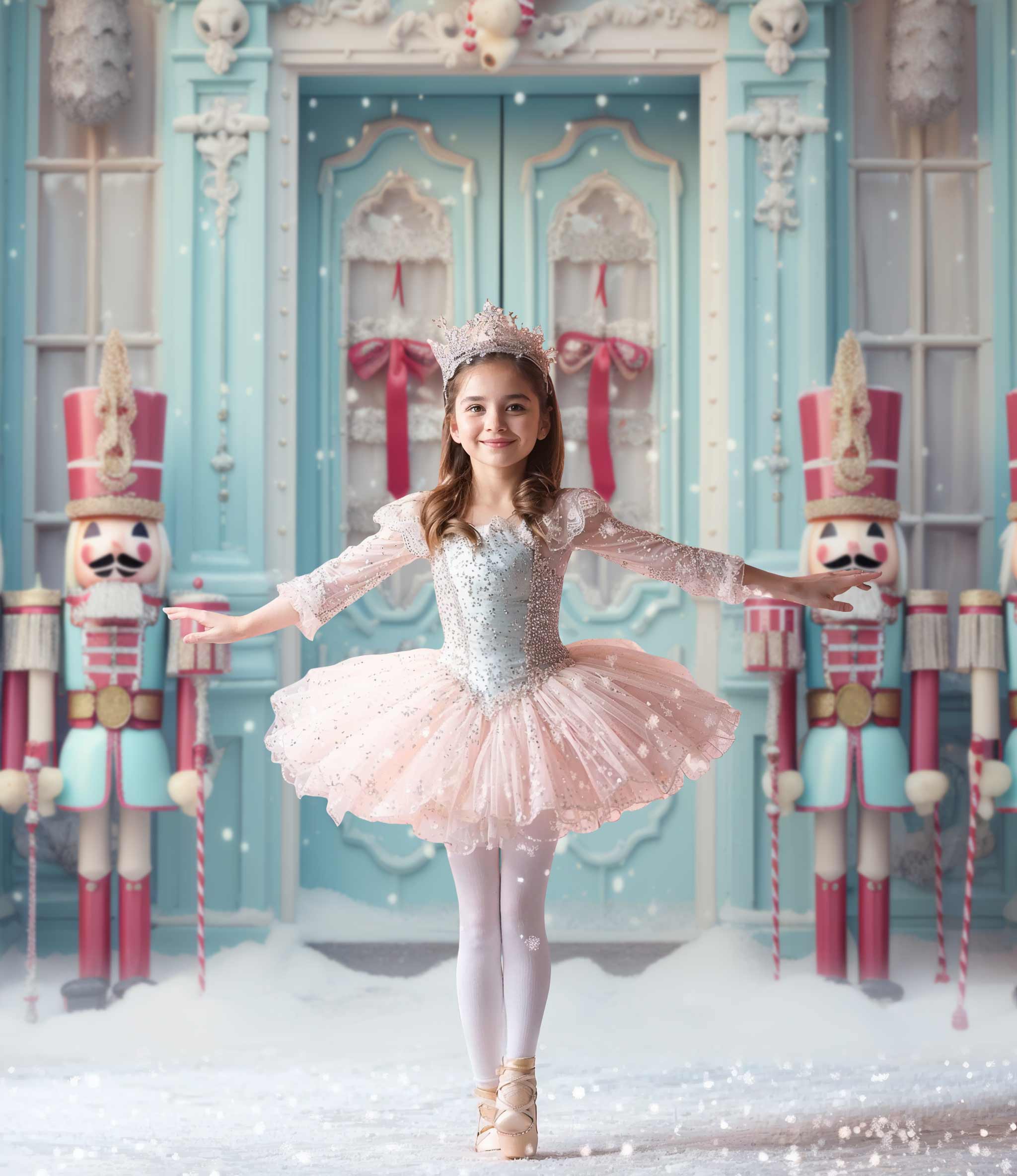 Blue Christmas Door Nutcracker Storefront Backdrop - Gatsby Backdrop