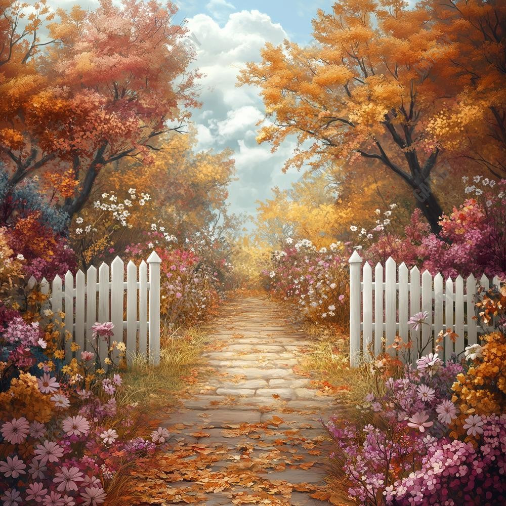 Gatsby Autumn Garden Fence Pathway Photography Backdrop Gbsx-01161