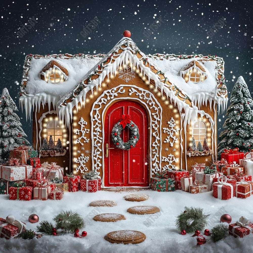Gatsby Christmas Festive Gingerbread House Photography Backdrop Gbsx-01148