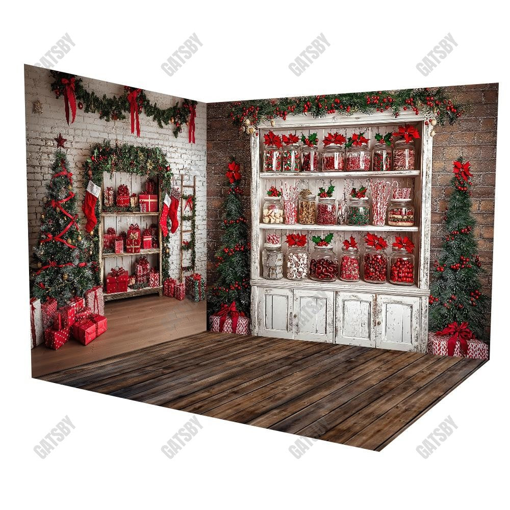 Gatsby Christmaswhite Cabinets Gifts Shelf Room Set Backdrop Gbsx-01074&Gbsx-01073&Ym8G-B0505