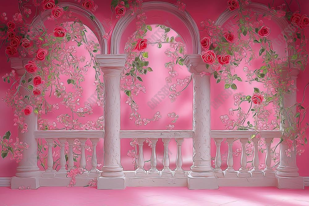 Gatsby Pink Princess Arched Floral Balcony Photography Backdrop Gbsx-01370