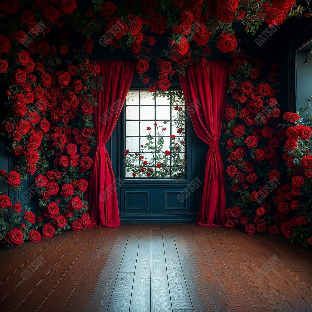 Gatsby Spring Valentine Red Flower Window Photography Backdrop Gbsx-01383