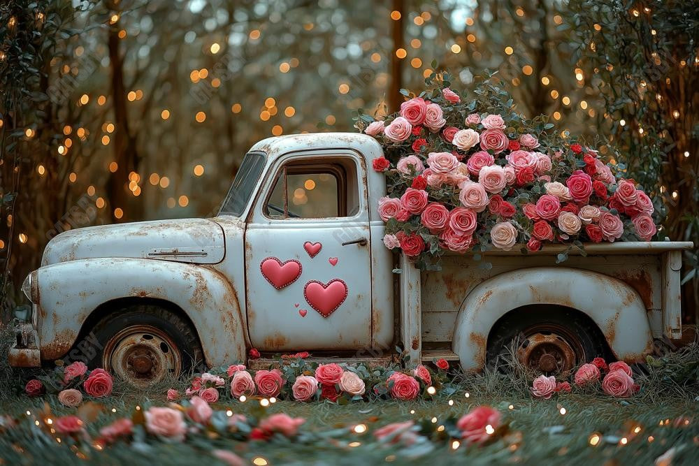 Gatsby Valentine Old Truck With Flowers Photography Backdrop Gbsx-01425