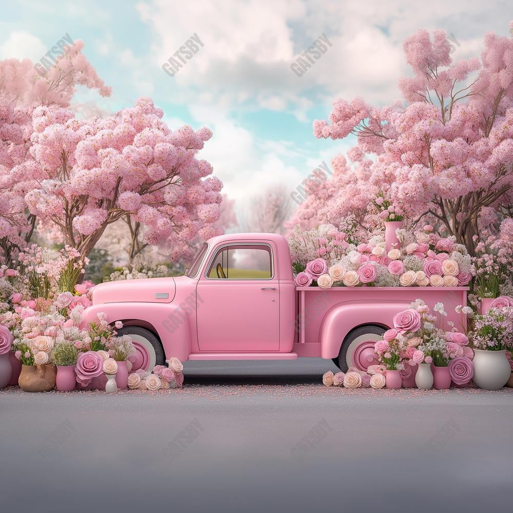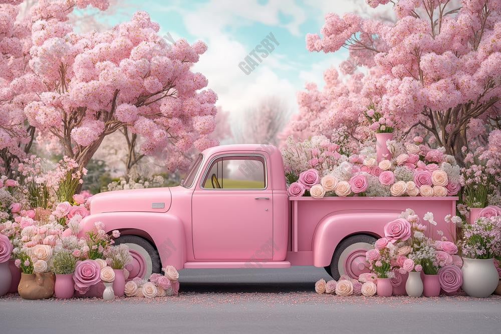 Gatsby Valentine Pink Flowers Truck Photography Backdrop Gbsx-01322
