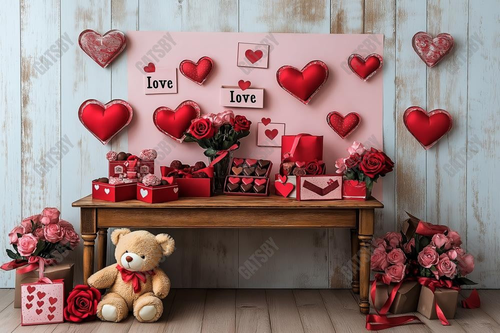 Gatsby Valentine Wood Table With Love Gifts Photography Backdrop Gbsx-01393