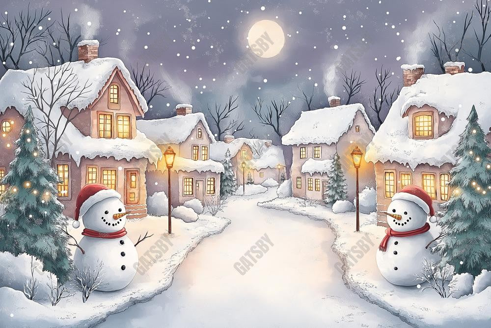 Gatsby Winter Jolly Village Evening Photography Backdrop Gbsx-01200