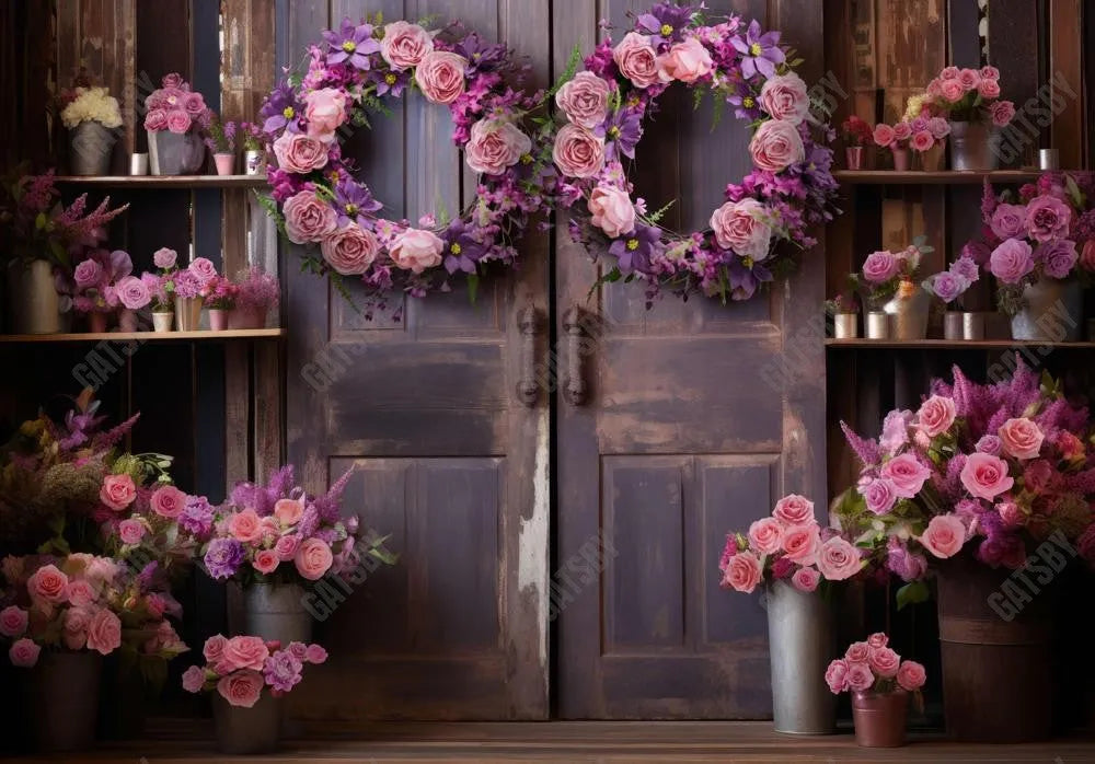 Spring Purple Flower Barn Door Photography Backdrop