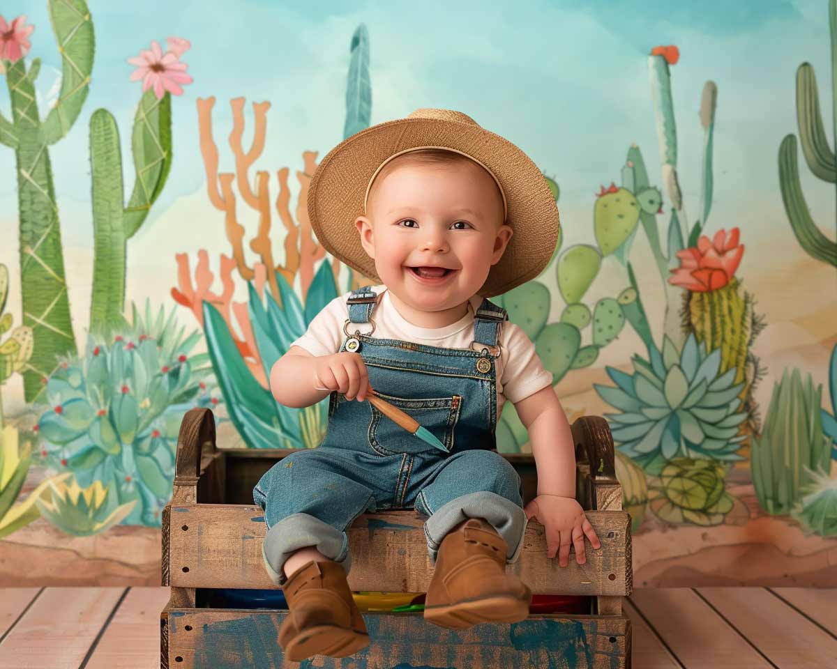 Watercolor Cactus Backdrop
